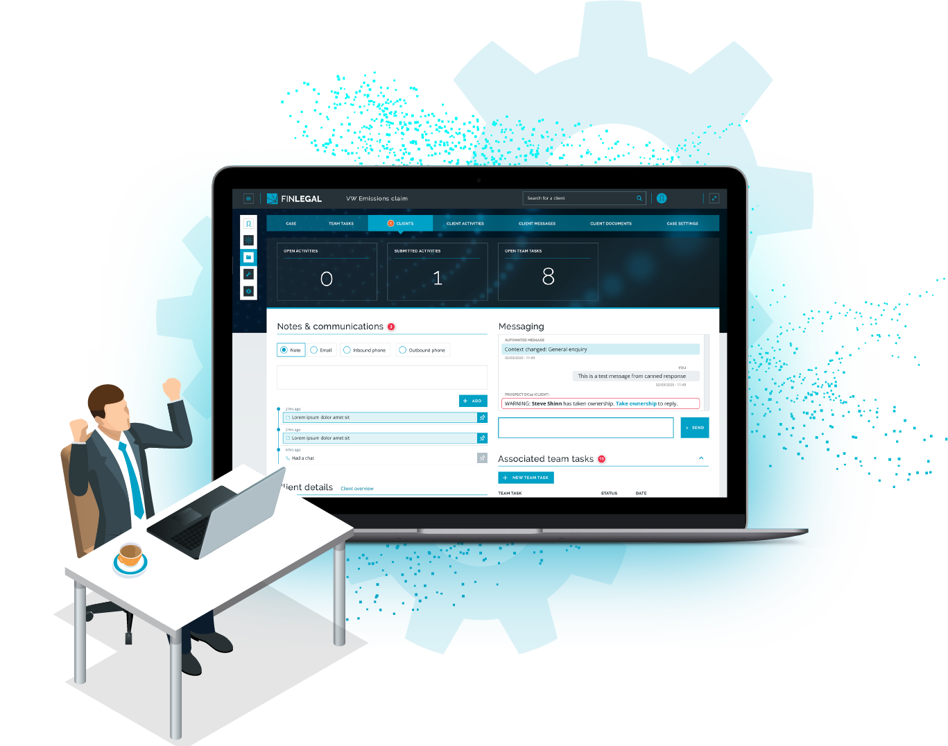 FinLegal’s automation solution replaces the disparate case management methods of spreadsheets, phone calls and offline case management systems, by digitally transforming the process with one firm branded product.
